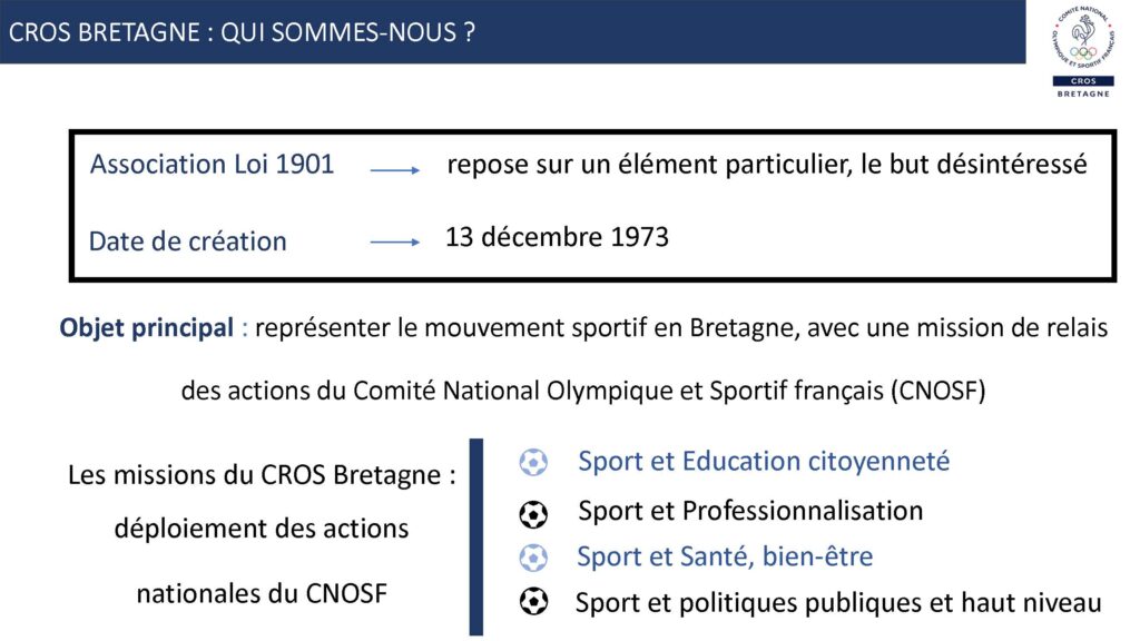 Le Comité Régional Olympique et Sportif BRETAGNE nous accompagne également dans toutes ces démarches